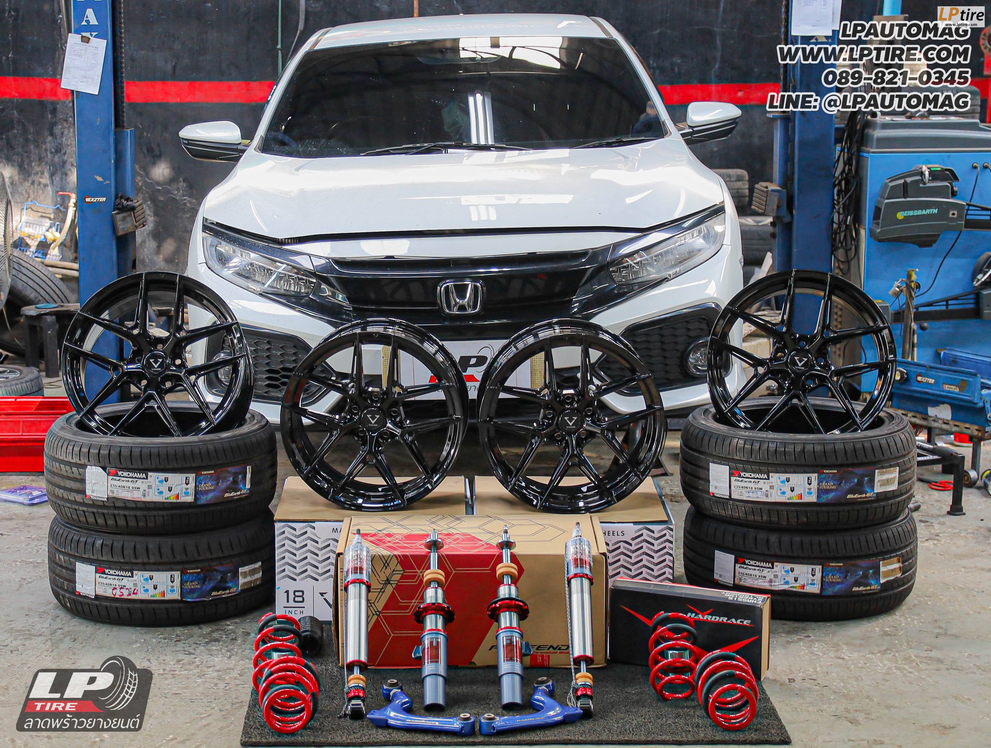 รถ - HONDA CIVIC ล้อแม็ก - VAGE VF013 FlowForming ดำเงา สเปค - 18x8.5 ET35 5x112-5x114.3 ยาง - YOKOHAMA AE51 เบอร์ -235/40-18 โช๊คอัพ Profender Fitz
